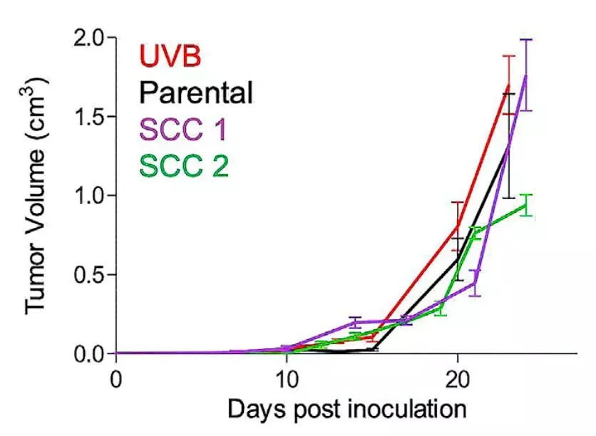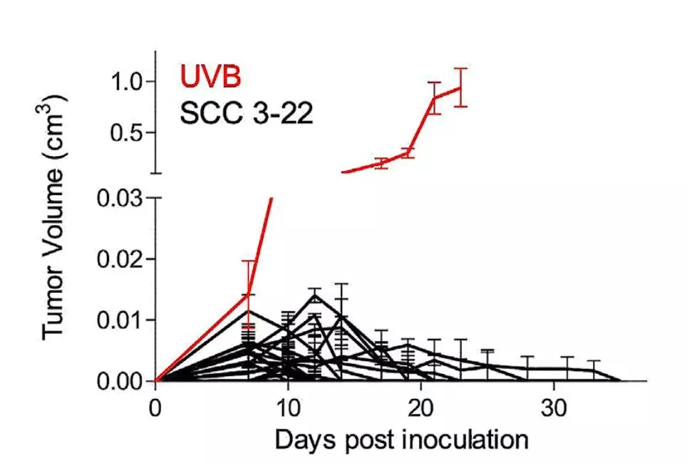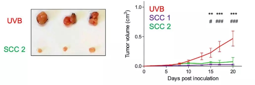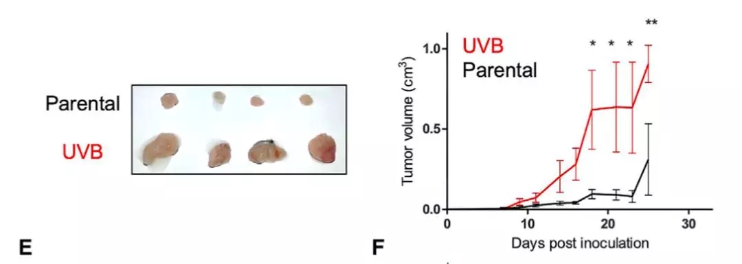 然后他們將未經(jīng)紫外線照射,和紫外線照射處理的癌細(xì)胞,分別移植到不同的小鼠體內(nèi)。結(jié)果發(fā)現(xiàn)經(jīng)過紫外線照射的癌細(xì)胞,在小鼠體內(nèi)形成的腫瘤,生長速度卻是明顯變快了。這暗示,紫外線照射后的癌細(xì)胞,對(duì)免疫系統(tǒng)的抑制似乎變得更強(qiáng)了。