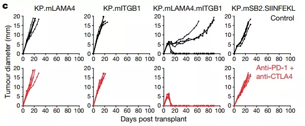 事實(shí)證明,沒(méi)有指揮官的部隊(duì)打不了勝仗:小鼠左腹,同時(shí)表達(dá)兩種新抗原的腫瘤,直接在注射免疫檢查點(diǎn)抑制劑后被消滅了,而右腹只表達(dá)mLAMA4的腫瘤,接受同樣的治療,卻僅僅是生長(zhǎng)速度被拖慢了一點(diǎn)。差距真的有,不服不行。