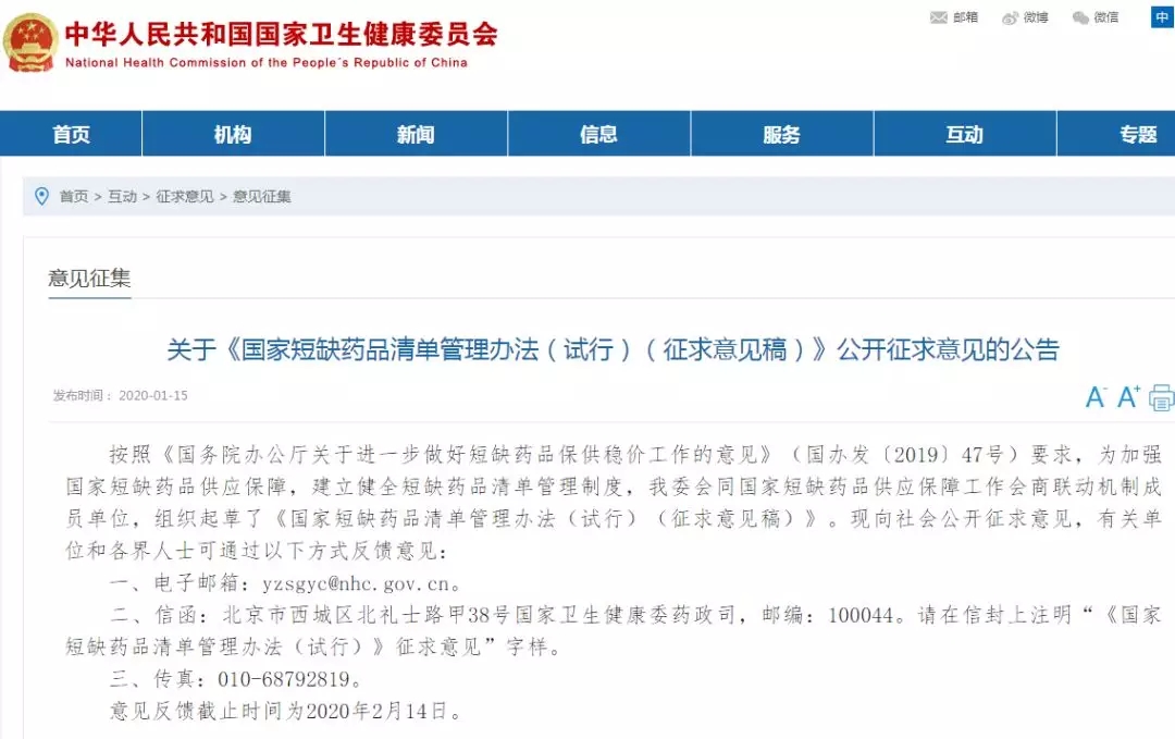1月15日,國家衛(wèi)健委網(wǎng)站發(fā)布了《國家短缺藥品清單管理辦法(試行)(征求意見稿)》(下稱“《意見稿》”),明確國家組織制定國家短缺藥品清單和臨床必需易短缺藥品重點監(jiān)測清單。