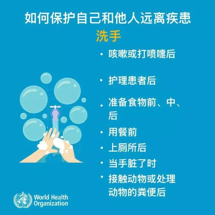 勤洗手、避免接觸眼、鼻、口可以有效防止包括流感、病毒性肺炎在內(nèi)的多種感染,是保護自己和家人健康的簡單方法。在餐前便后、外出回家、接觸垃圾、撫摸動物后,要記得洗手,揉搓的時間不少于15秒。使用肥皂和清水洗手或者使用含有酒精成分的免洗手液。