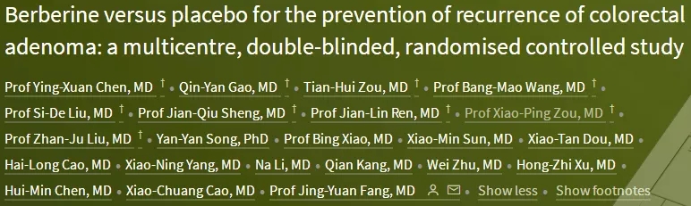 由上海交通大學(xué)醫(yī)學(xué)院附屬仁濟醫(yī)院房靜遠教授牽頭,在中國七所醫(yī)院開展的一項臨床III期試驗證實:每天服用兩次,每次三片黃連素片,可以使結(jié)直腸腺瘤患者,腺瘤完全切除后兩年內(nèi)的復(fù)發(fā)風(fēng)險相對下降23%!