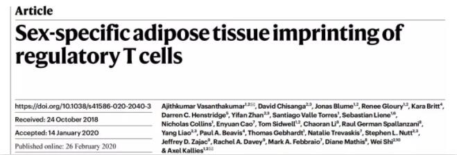 近日,澳大利亞墨爾本大學(xué)的研究人員在國際頂尖學(xué)術(shù)期刊 Nature 雜志上發(fā)表了一篇題為:Sex-specific adipose tissue imprinting of regulatory T cells 的研究論文。