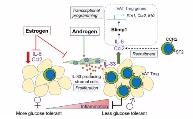 因此,這種基質(zhì)細(xì)胞決定了有多少Treg細(xì)胞可以進(jìn)入到脂肪組織中,同時(shí)還與Treg細(xì)胞的激活相關(guān),從而影響機(jī)體的肥胖表征。