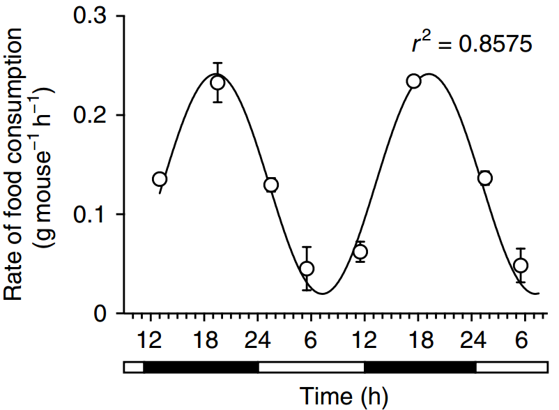 研究人員把小鼠養(yǎng)在了一個(gè)嚴(yán)格控制光照周期的環(huán)境里,每天開始光照的時(shí)間記為t0,12小時(shí)后的t12時(shí)結(jié)束光照,進(jìn)入12小時(shí)的黑暗。也就是t0~t11這段相當(dāng)于白天,而t12~t23相當(dāng)于夜晚。