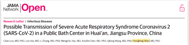 然而,3月30日,南京醫(yī)科大學沈洪兵院士、南京醫(yī)科大學附屬淮安第一醫(yī)院王其龍等在國際頂尖醫(yī)學期刊 JAMA 子刊 JAMA Network Open 發(fā)表了題為:Possible Transmission of Severe Acute Respiratory SyndromeCoronavirus 2 (SARS-CoV-2) in a Public Bath Center in Huai’an, JiangsuProvince, China 的論文。