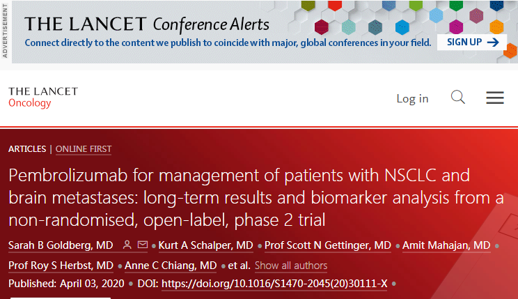 派姆單抗在非小細(xì)胞肺癌腦轉(zhuǎn)移中有活性,PD-L1表達(dá)至少為1%,對(duì)未經(jīng)治療的腦轉(zhuǎn)移患者是安全的。因此,對(duì)非小細(xì)胞癌患者中樞神經(jīng)系統(tǒng)疾病免疫治療的進(jìn)一步研究是很有必要的。