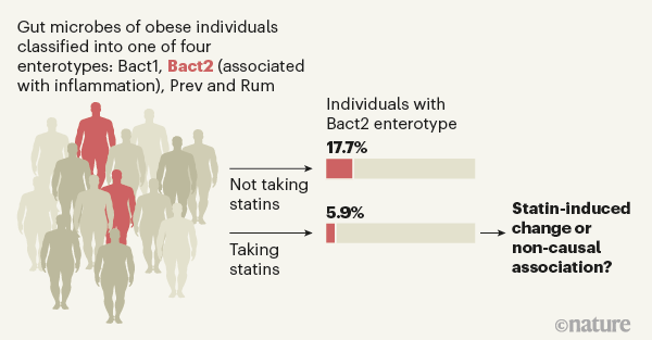 他汀類(lèi)藥物通常用于降低心臟代謝疾病的風(fēng)險(xiǎn)。他汀類(lèi)藥物除了具有降低膽固醇的作用外,還可以緩解患者的全身炎癥水平?,F(xiàn)在,維埃拉·席爾瓦和他的同事已經(jīng)發(fā)現(xiàn)他汀類(lèi)藥物治療對(duì)腸道微生物群的另一個(gè)潛在的有益作用。在肥胖個(gè)體中,服用他汀類(lèi)藥物的患者(6%)的益生菌Bact2腸型患病率顯著低于未經(jīng)治療的患者(19%),與非肥胖參與者(4%)的水平相當(dāng)。這些驚人的觀察結(jié)果不僅在獨(dú)立的Flemish腸道菌群項(xiàng)目數(shù)據(jù)集中得到了驗(yàn)證,而且在由280名心血管疾病患者組成的另一個(gè)曼特卡戴斯聯(lián)合會(huì)分會(huì)中也得到了驗(yàn)證。