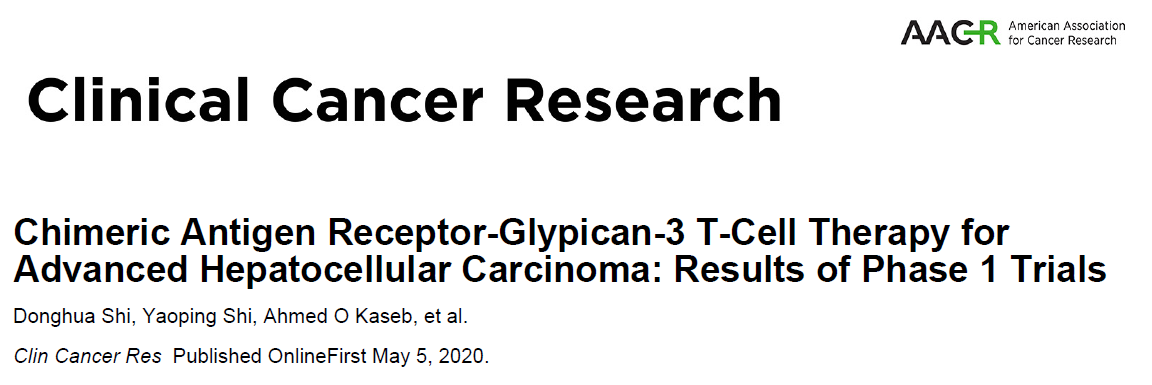 近日,上海交通大學醫(yī)學院附屬仁濟醫(yī)院腫瘤介入科翟博教授團隊與科濟生物李宗海教授團隊合作,在 Clinical Cancer Research 雜志發(fā)表了題為:Chimeric Antigen Receptor-Glypican-3 T-Cell Therapy for Advanced Hepatocellular Carcinoma: Results of Phase 1 Trials 的1期臨床試驗結(jié)果。