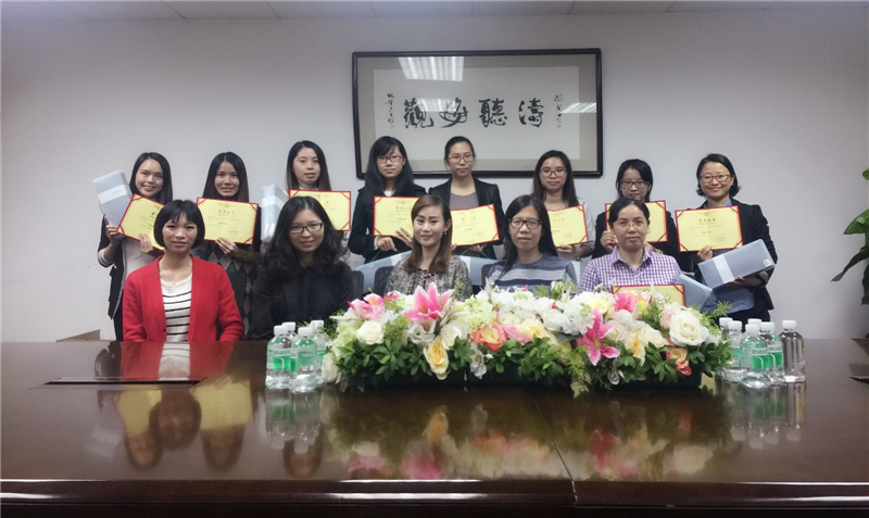 市場品牌總監(jiān)鐘靈、人事行政副總監(jiān)林曉旋和市場品牌主管張倩(講師)為大家頒發(fā)了獎狀和獎品