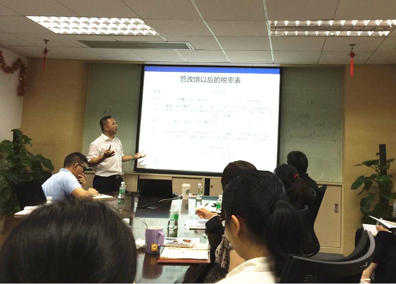 下午14:30,在大家一陣熱烈的掌聲中,講師---財(cái)務(wù)部高級(jí)經(jīng)理黃啟清開始了精彩的培訓(xùn)。從營改增的擴(kuò)圍路線開始,我們對(duì)營改增政策的發(fā)展歷程有了清晰的了解,接著,黃經(jīng)理深入淺出地給我們?cè)敿?xì)介紹了增值稅計(jì)稅原理、增值稅基本稅率、增值稅納稅人分類、增值稅稅收優(yōu)惠政策、企業(yè)如何適應(yīng)增值稅及如何進(jìn)行納稅籌劃等知識(shí),中間穿插了很多工作生活中常見的案例,讓我們很多非財(cái)務(wù)的學(xué)員全面了解到營改增新政的專業(yè)知識(shí)。真是受益匪淺。