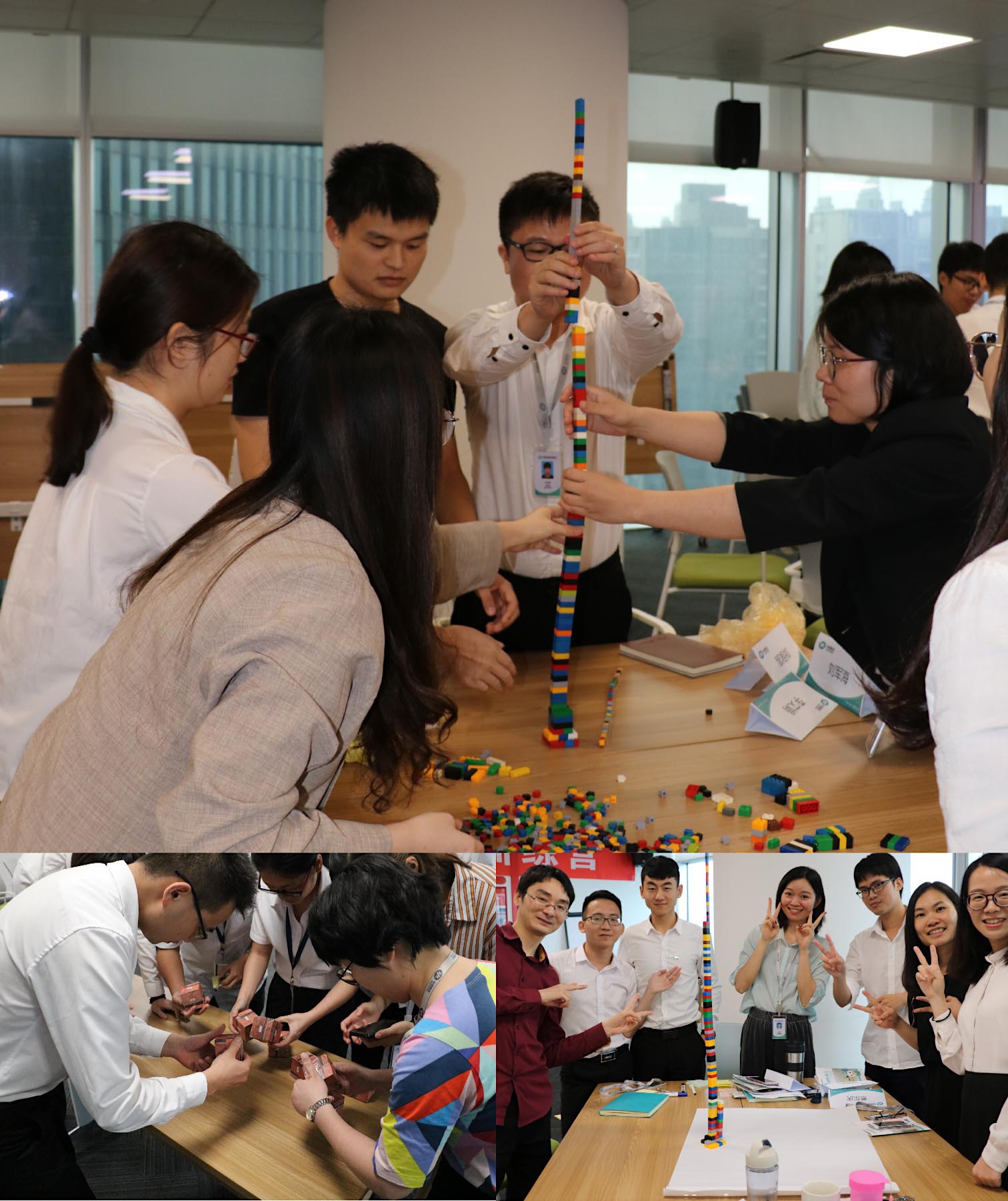 一系列熱鬧的游戲引爆了大家的熱情:“猜數(shù)色子”、“樂高筑塔”、“以畫示中潤”等游戲,學(xué)員們腦力激蕩、積極參與,總結(jié)游戲經(jīng)驗(yàn),分享收獲感悟,將“誠信、奮斗、專業(yè)、創(chuàng)新”與工作相連接,打開工作的思路。