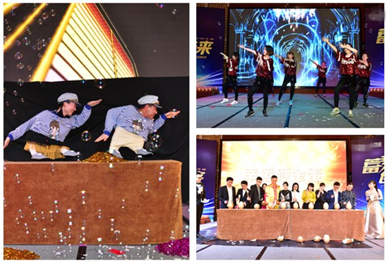 夜晚,星光璀璨,人聲鼎沸。松山湖邊的宴會(huì)廳被裝扮得光彩奪目,處處可見盛裝出席的同仁們,男士們英姿颯爽,女士們美麗動(dòng)人。臺(tái)下,觥籌交錯(cuò)、吐露心聲;臺(tái)上,流光溢彩、好戲不斷。中潤(rùn)人才濟(jì)濟(jì),各種創(chuàng)意節(jié)目頻出,讓我們回顧一下精彩的瞬間: