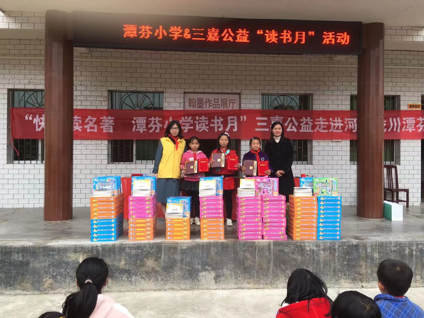 2019年,為解決鄉(xiāng)村孩子的閱讀危機(jī),幫助他們養(yǎng)成良好的閱讀習(xí)慣,三嘉公益資助了20余所鄉(xiāng)村小學(xué),為鄉(xiāng)村孩子們帶去了千余套“名著小書(shū)包”及相關(guān)學(xué)習(xí)物資。