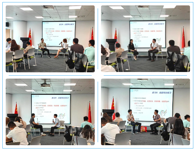 為了鞏固培訓(xùn)所學(xué)知識(shí)與技能,在兩天學(xué)習(xí)日程的最后安排了“Role Play”環(huán)節(jié),由學(xué)員們分組進(jìn)拜訪場景演練,再由講師進(jìn)行點(diǎn)評(píng)并對(duì)存在的問題提出針對(duì)性的改進(jìn)建議。